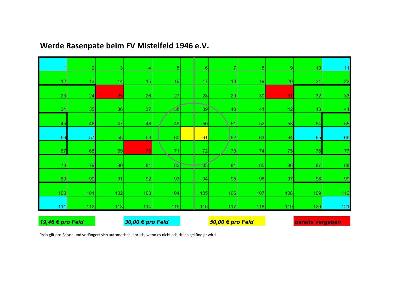 Bitte unterstütze uns dabei und übernimm eine Rasenpatenschaft beim FV Mistelfeld.